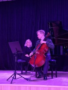 Wieczór miał wyraźnie zarysowaną dramaturgię – od skupienia i powagi, przez intymność i wyciszenie, aż po napięcie i energiczny finał. Już pierwsze dźwięki sonaty wiolonczelowej Johannesa Brahmsa wprowadziły słuchaczy w świat gęstego, nasyconego emocjami języka muzycznego. Dialog instrumentów nie tyle prowadził melodię, co budował przestrzeń pełną napięcia i refleksji, zapraszając do uważnego słuchania i zanurzenia się w dźwięku.