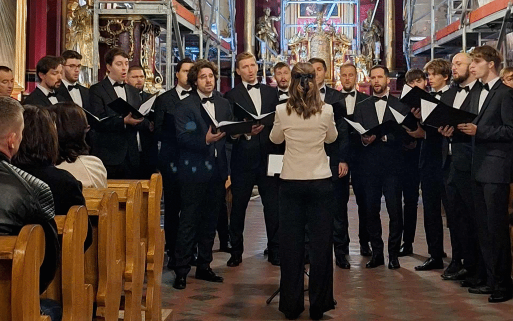 Występ chóru był pełen zaangażowania i wewnętrznej energii. Męskie głosy stworzyły brzmienie o niezwykłej sile i szlachetności, które harmonijnie współbrzmiało z delikatnością i precyzyjnym prowadzeniem dyrygentki Justyny Hanusiak. To połączenie – pewności głosu i wrażliwości interpretacji – nadało wykonaniom szczególną intensywność i emocjonalną głębię.